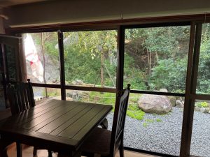 美枝子さん「最初に訪れた時、ここはすりガラスで何も見えなかったの。窓を開けてみたら、まさかこんな素敵な景色が広がっているなんて!いつでも見られるような設えにしてもらいました。」