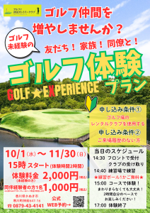 アルファ津田カントリークラブ ゴルフ体験開催中!.