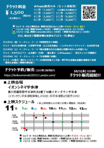 ■日時:11月14日(金)・1回目14:30~・2回目17:00~・3回目19:30~