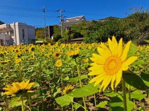 港から本島市民センターへの道沿いに「ひまわり畑」が!!