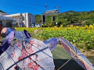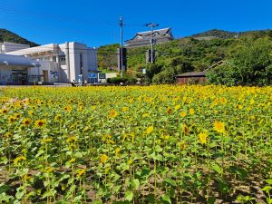 多くの方が歩くメインロードに、今回初めての試みとして島の方が9月に種を植え、大事に育ててきたひまわりが見頃を迎えています。