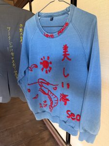 島民の皆さんから古着を集めて、自由に絵や言葉を刺繍してもらいました。