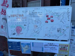 瀬戸芸のために特別に作成された「塩飽本島グルメマップ」は、丸亀港と本島港で配布されています。