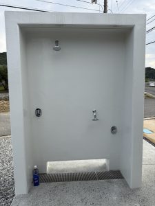 簡易シャワーも併設。夏に目の前の海で遊んだ後に利用することもでき、とっても便利!