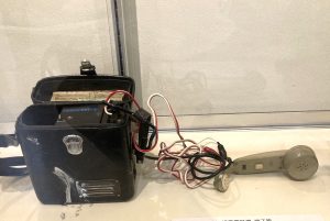 「これは昔の携帯電話みたいなものですね。沿線約500mおきに端子箱が設置されていて、倒木や積雪などトラブルがあった際、その端子箱に電話器を繋ぐと最寄り駅に連絡がとれるというものです」