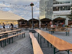また、山小屋風の「ヒュッテ」の中では、ホットワインやホットビール(チェリー味!)、ホットチョコレート(何種類もあります!)、シチュー、ミネストローネなどのあったかフードや、