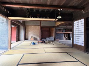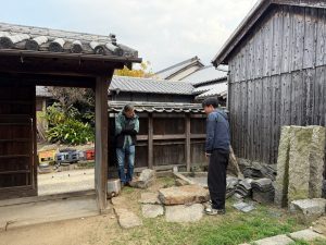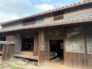 江戸時代の建築とされている「豊島邸」は、当時、廻船業を営んでおり、咸臨丸に乗船した水主(水夫)もいる船乗りの家系とのこと。長らく空き家となっていましたが、笠島地区の中でも、敷地も屋敷も大きい特筆すべき建物です。