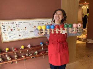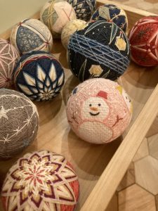 周りには、可愛い柄のかがり手毬も。季節ごとに入れ替えをしているとのこと。