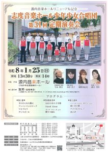 2026年1月25日(日)「源内音楽ホールリニューアル記念 志度音楽ホール少年少女合唱団 第31回定期演奏会」が源内音楽ホールで開催されます。