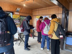 大洞窟のチケット売り場でお客さんをお迎え。外国人の方のフォローや記念撮影のサービス、お土産の試食を「スーベニア!」とお渡ししたり。常に笑顔でお話されている姿に元気をいただきました。