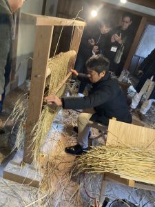 その後参加者は、古民家を改装して作られたむしろづくり拠点へ徒歩で移動。