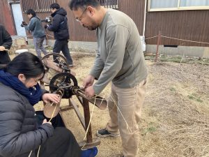 実際に縄をない、むしろを編む体験をしました。