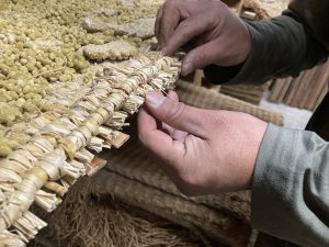建物の中では、野田さんがむしろの編み方をレクチャー。