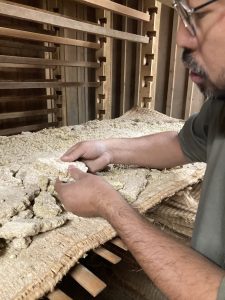 「菌は、伸びていく段階で熱を持ちます。むしろは温度や湿度の調節をしてくれる大切な役割を担っているのです」