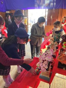 人形や道具の配置を実行委員会の女性たちに教えてもらいながら置いていきます。