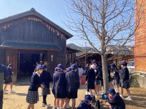 続いて出会ったのは、制服姿の小学生たち。引田小学校の5年生が、毎年、地元を知る体験の一環として雛人形を飾ります。