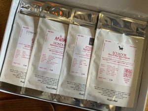 ライト(5店舗/当日のみ)、区切り内(12店舗/通期)、通し打ち(24店舗/通期)の3種類あり、試飲をするごとに各ロースターさんがロゴシールをくれますので、スタンプラリーのように御朱印帳に貼って集めて楽しめます。